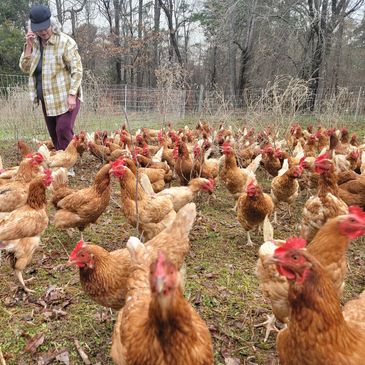 We've moved to Paragould, Arkansas with new Chicken Tenders who know how to feed us our favorite USDA certified organic, non-GMO food, fresh water to wash that down with, and a pasture to search for bugs and chicken salad (grass)!